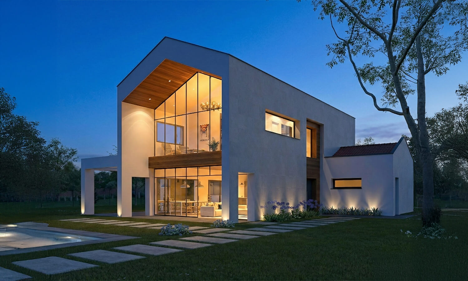 Desde el primer momento, su prioridad fue la luminosidad. Los grandes ventanales, diseñados a medida, capturan cada rayo de luz natural y conectan el interior con el paisaje asturiano, convirtiendo cada estancia en un espacio lleno de vida. La arquitectura refleja su carácter: líneas contemporáneas y abiertas, pero con un toque acogedor que invita a disfrutar en familia.