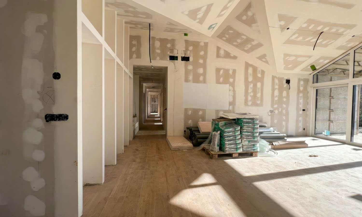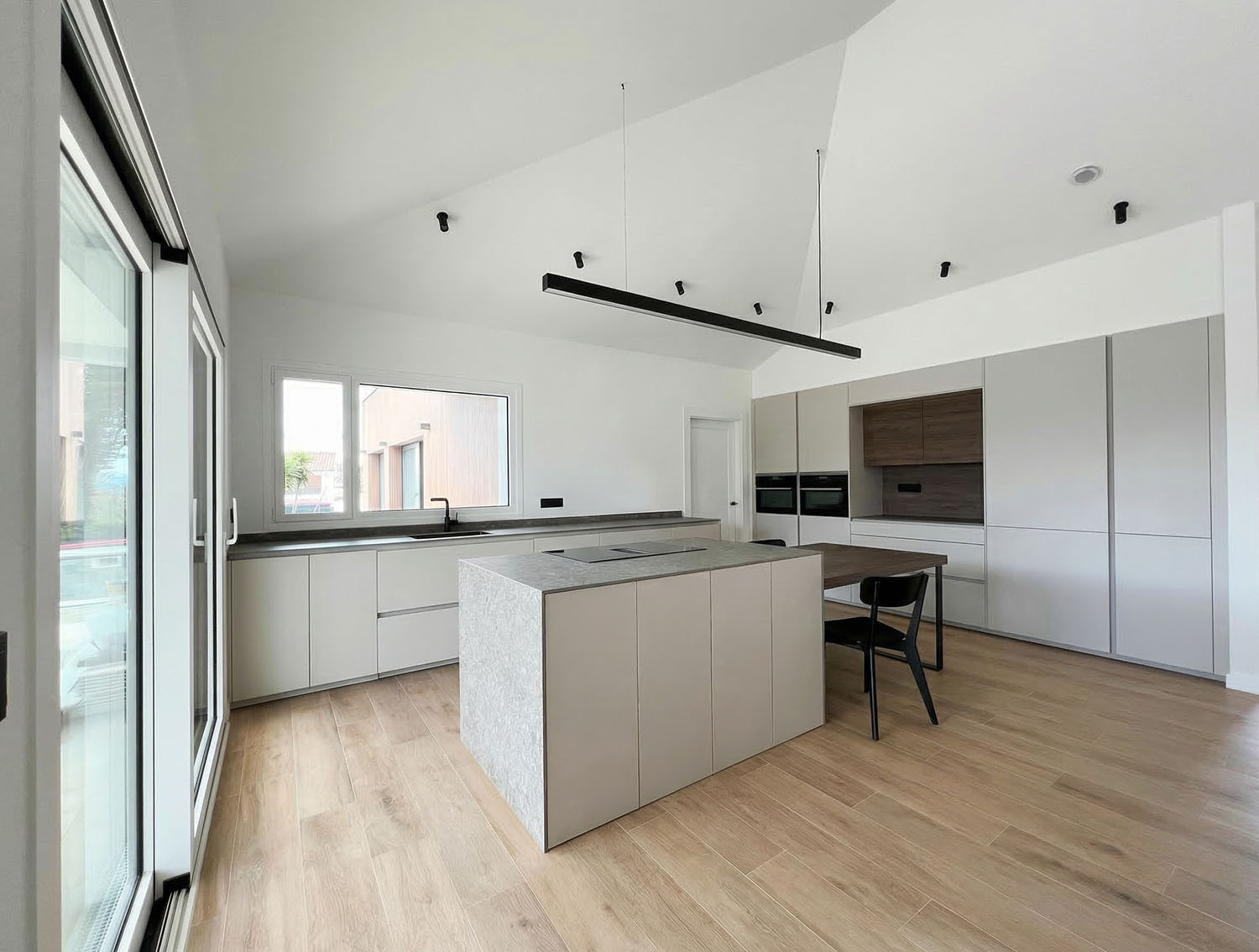 Ventanales al sur y acceso directo al jardín en toda la vivienda, con una protagonista clara: la zona wellness, con gimnasio, jacuzzi y salida a la piscina. La zona social se abre al exterior con forja y vidrio, mientras la suite principal suma vestidor, terraza privada y una orientación privilegiada.