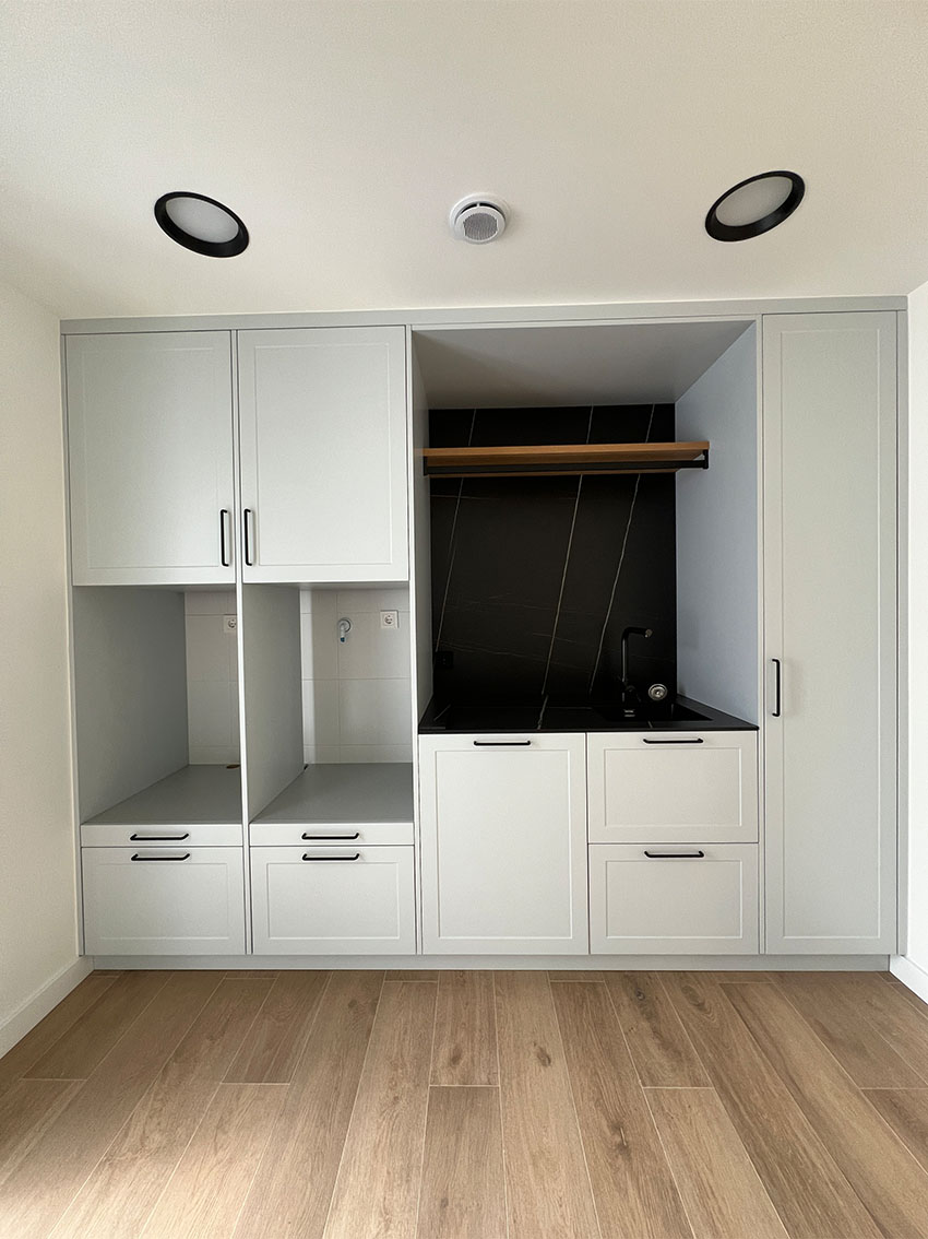 Destaca en este proyecto la zona destinada a wellness. Un gimnasio con jacuzzy anexo y acceso a la piscina exterior.